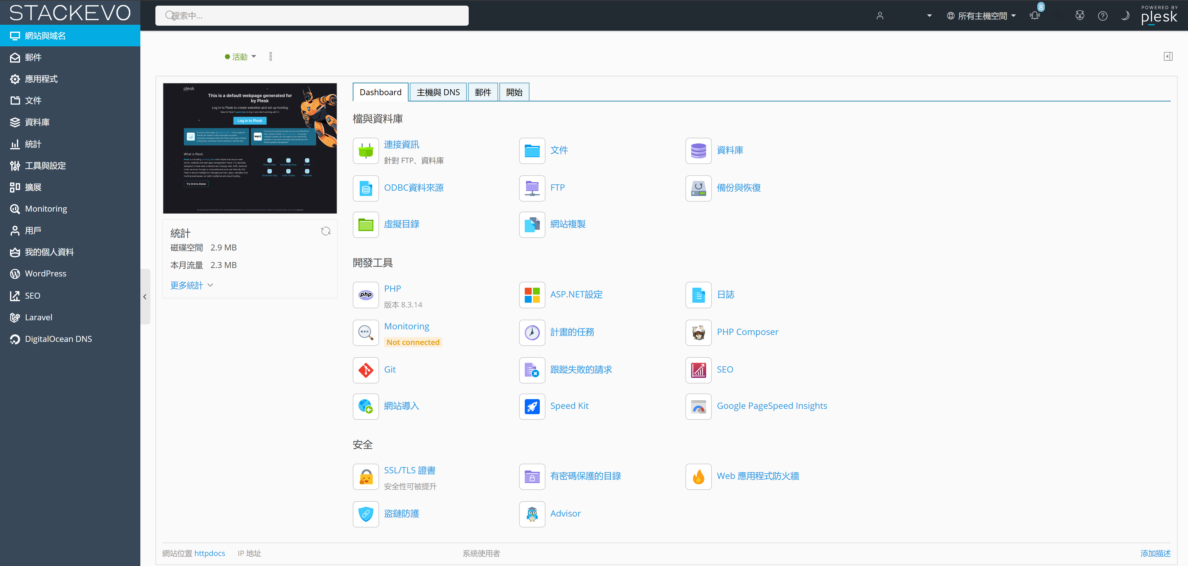 (基於 Linux 系統之服務方案適用 cPanel 管理介面,基於 Windows Server 系統之服務方案則適用 Plesk 管理介面)